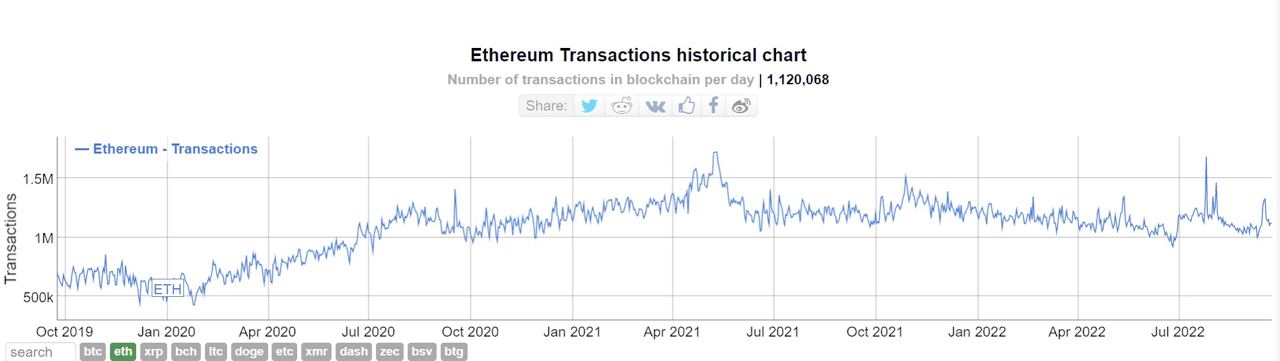 Сетевая активность после всплеска, спровоцированного обновлением эфириума, также слабеет. Среднесуточное число транзакций на блокчейне упало с 1,322 млн до 1,183 млн.