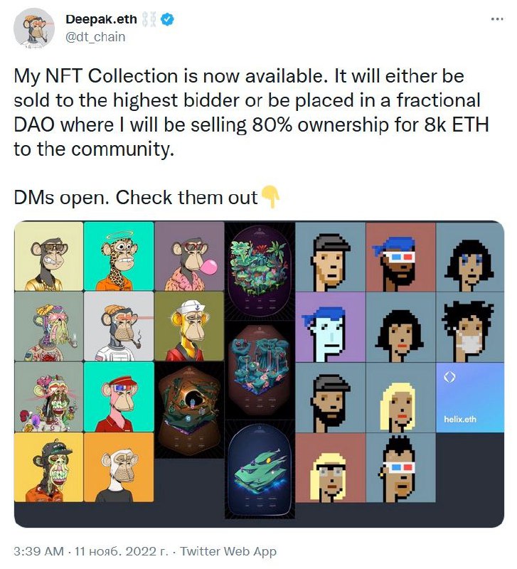 Владелец самой дорогой коллекции NFT выставил ее на продажу