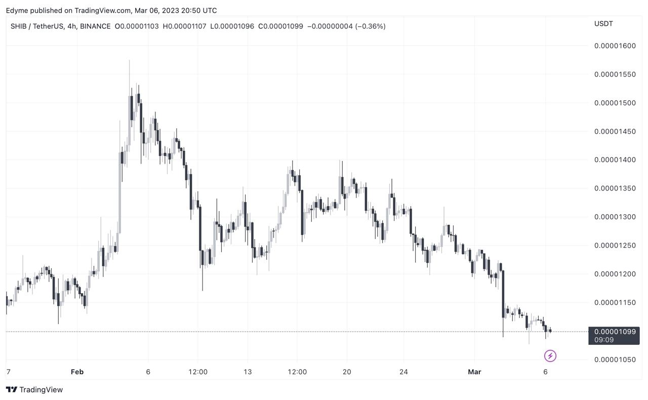 Однако уже в феврале киты возобновили продажу токенов после того, как SHIB достиг пиковых значений в первой половине прошлого месяца. В марте монета подешевела почти на 15% до $0,00001098.