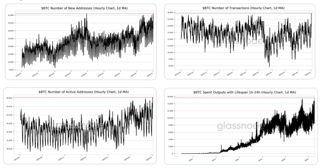 Технический директор аналитического портала Glassnode Рафаэль Шульце-Крафт выделил несколько метрик, свидетельствующих о возросшей активности в сети биткоина.