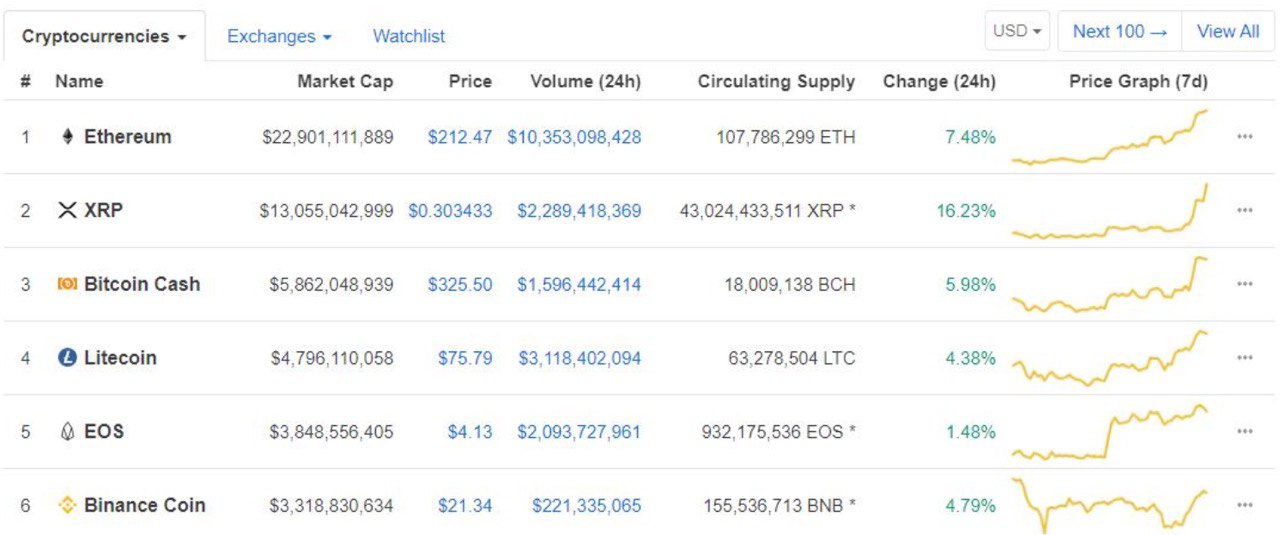 Абсурдные значения отображались и на самом сайте. Так, из-за неизвестного бага биткоин временно пропал из расчётов, даровав сторонникам Ethereum момент триумфа, а отображаемая совокупная капитализация сегмента мгновенно упала до $83 млрд.