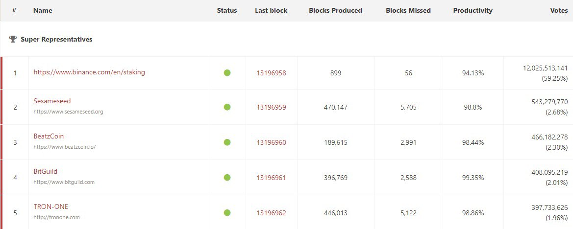 Биржа криптовалют Binance приобрела 12 млрд голосов для своей новой стекинговой платформы в системе TRON, чтобы выйти на первое место в списке супер-представителей или производителей блоков, свидетельствуют данные портала tronscan.org.