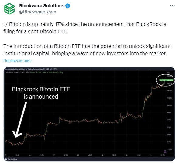 И это — еще до того, как поступила заявка на спотовый биткоин-ETF от BlackRock.