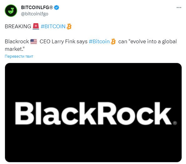 🗣 Генеральный директор Blackrock Ларри Финк считает, что биткоин может «превратиться в глобальный рынок»