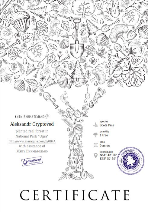 Увеличить количество деревьев на планете Земля можно по ссылке: https://www.maraquia.com/plantations/lots/3693?order_id=303463