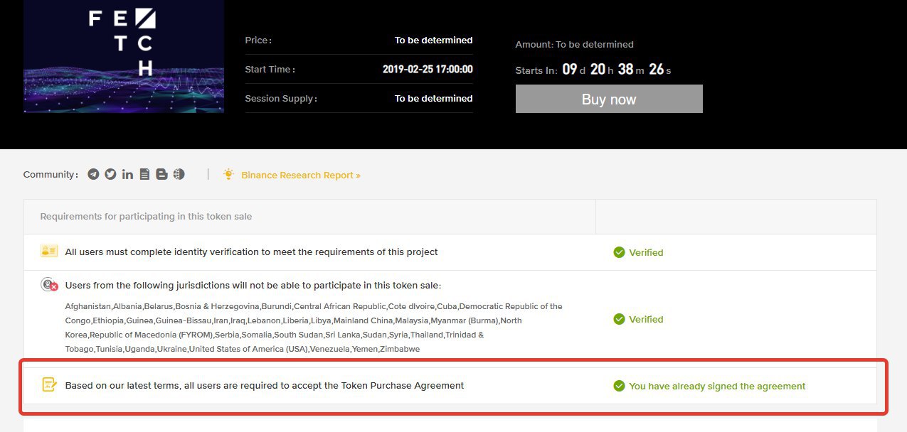 1) На странице Fetch на Binance рекомендую подписать прямо сегодня соглашение (возможно, это даст какое-то преимущество при участии в токенсейле): https://launchpad.binance.com/en/project/44