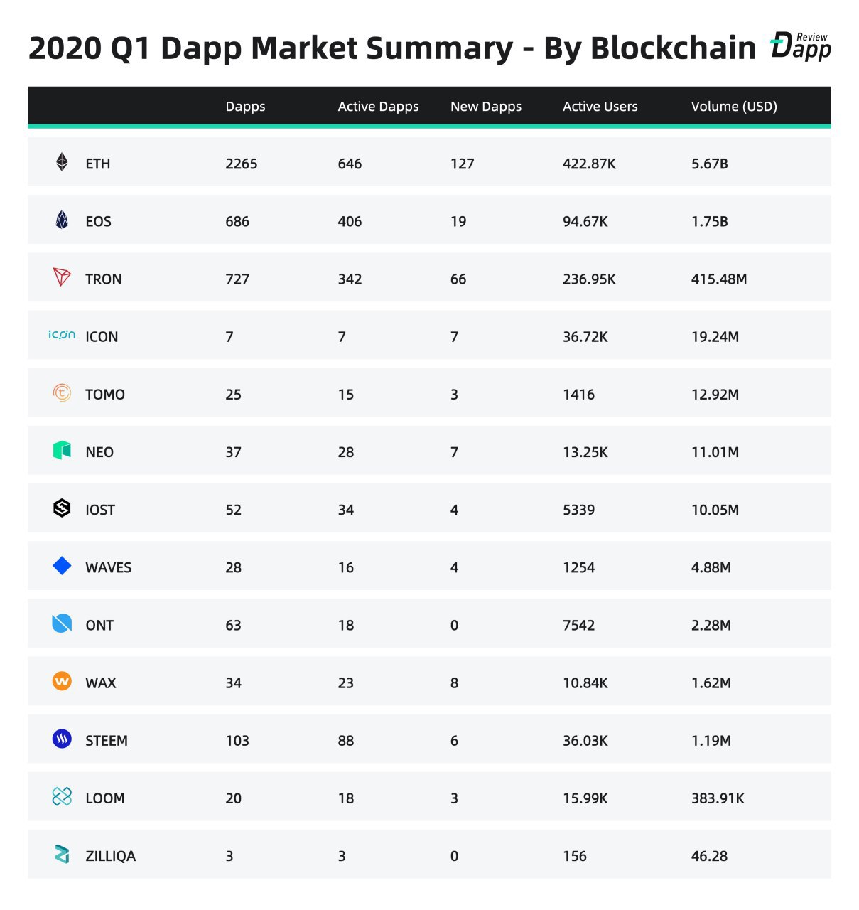 Большой отчет по Dapps вышел от аналитического портала DappReview, итоги первого квартала текущего года.