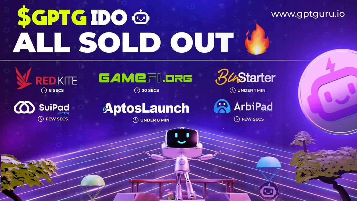 🔥 IDO солдаутнулось за СЕКУНДЫ! И теперь единственный шанс получить хоть немного токенов по хорошей цене (бесплатно) - это РОЗЫГРЫШ $GPTG НА $5000!