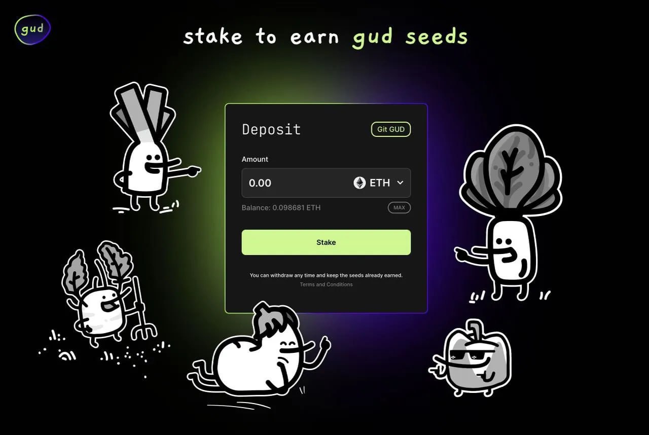 📊 Проект стартовал совсем недавно, но уже есть возможность застейкать крипту, чтобы начать получать Gud Seeds - поинты, необходимые для получения вознаграждений и открытия доступа к особым ивентам на платформе.