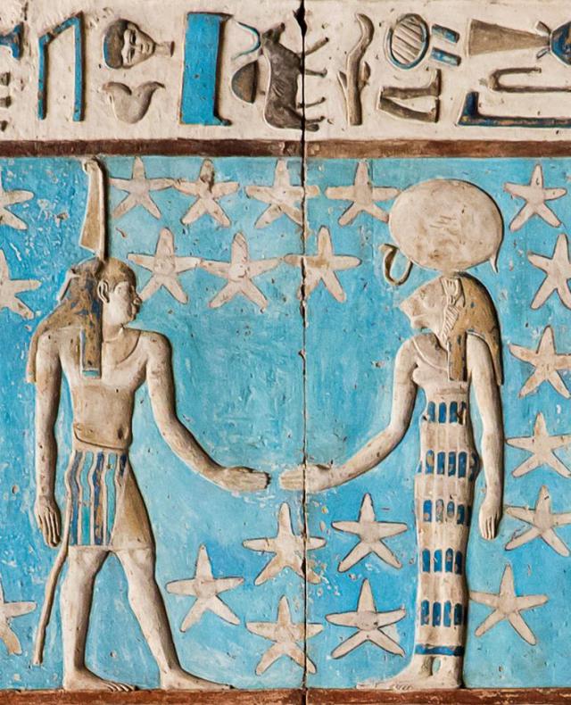 На картинке супруги Шу и Тефнут (изображение из храма Богини любви Хатхор в #Дендере)