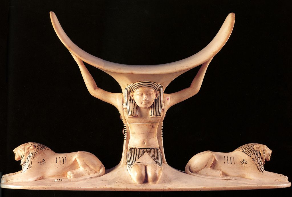 Это подголовник для мумии. Коленопреклоненный Бог Шу держит небо. Которое, по совместительству, является его родной дочкой Нут.