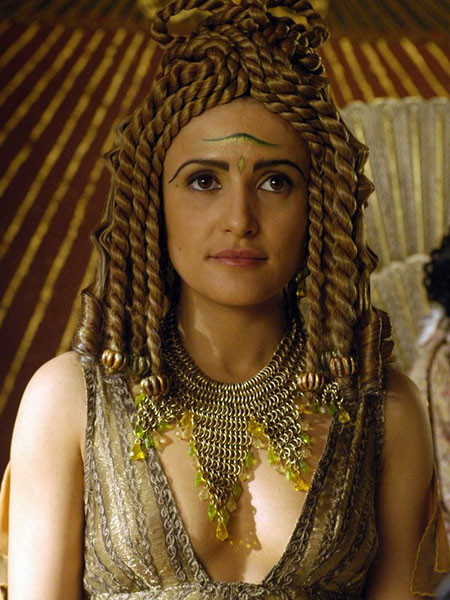 А вот какова в роли #Клеопатры_Седьмой английская актриса #Линдси_Маршал. Внешне образ вполне ничего. #Калазирис годный 😊 Но уск (драгоценный воротник-ожерелье) царицы ниже всякой критики. Ощущение, что костюмеры купили его с лотка - все по 2€. 🙈