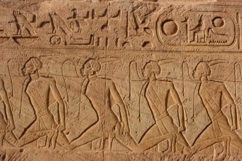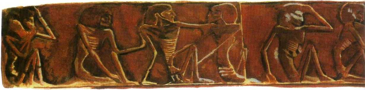 На рельефе ниже изображены худющие египтяне в голодный год.