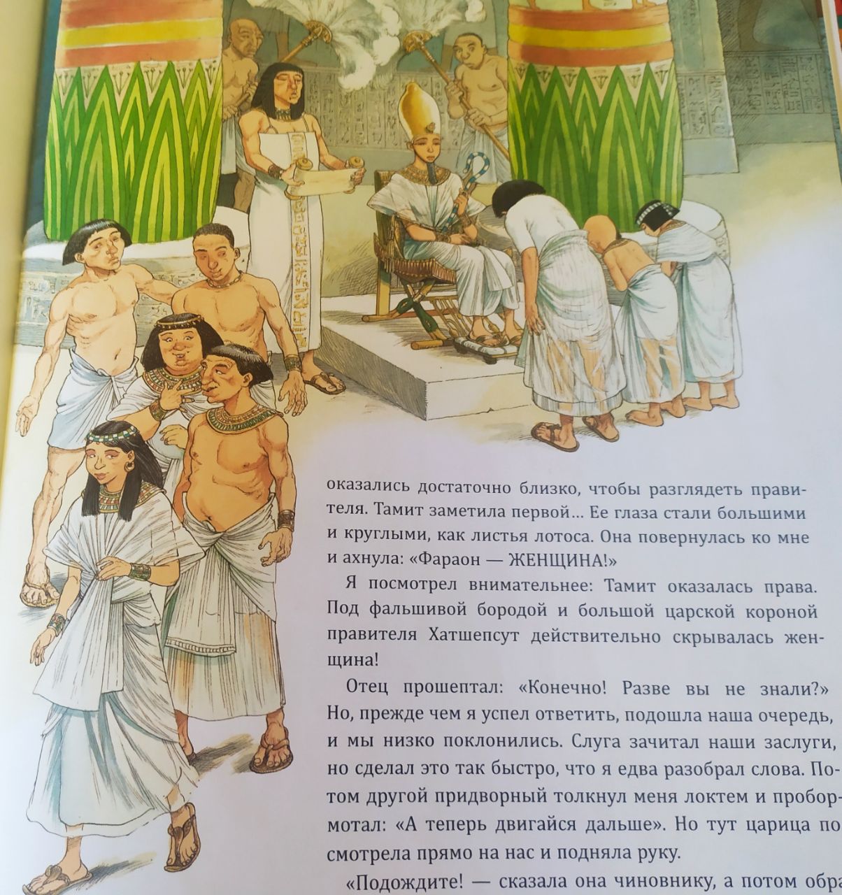 8. Ну и, конечно, описание встречи незнатных детей с Хатшепсут - один большой ляп. Даже самых геройских героев никто бы не привёл в тронный зал. Они бы лежали лицом в землю во внешнем дворике дворца. А слова Фараона им бы передал специальный слуга;
