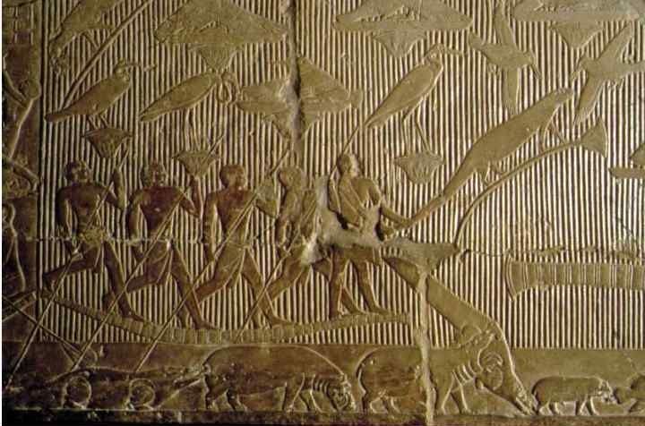 У #Фараона_Тети был зять и визирь по имени #Мерерук. На рисунке из гробницы вельможи изображены слуги, плывущие на легком папирусном челне. Я понимаю, что за все эти тысячелетия рельеф, мягко говоря, стерся. Но присмотрись к тому, что происходит под лодочкой. Там изображены крооооохотные крокодильчики и бегемошки.