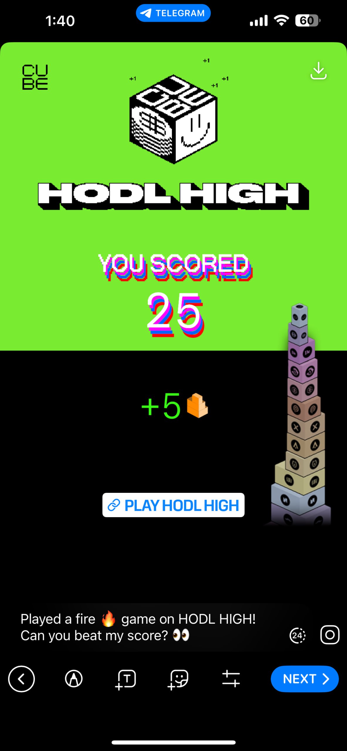 You can now share your scores from HODL HIGH! 🕹✨