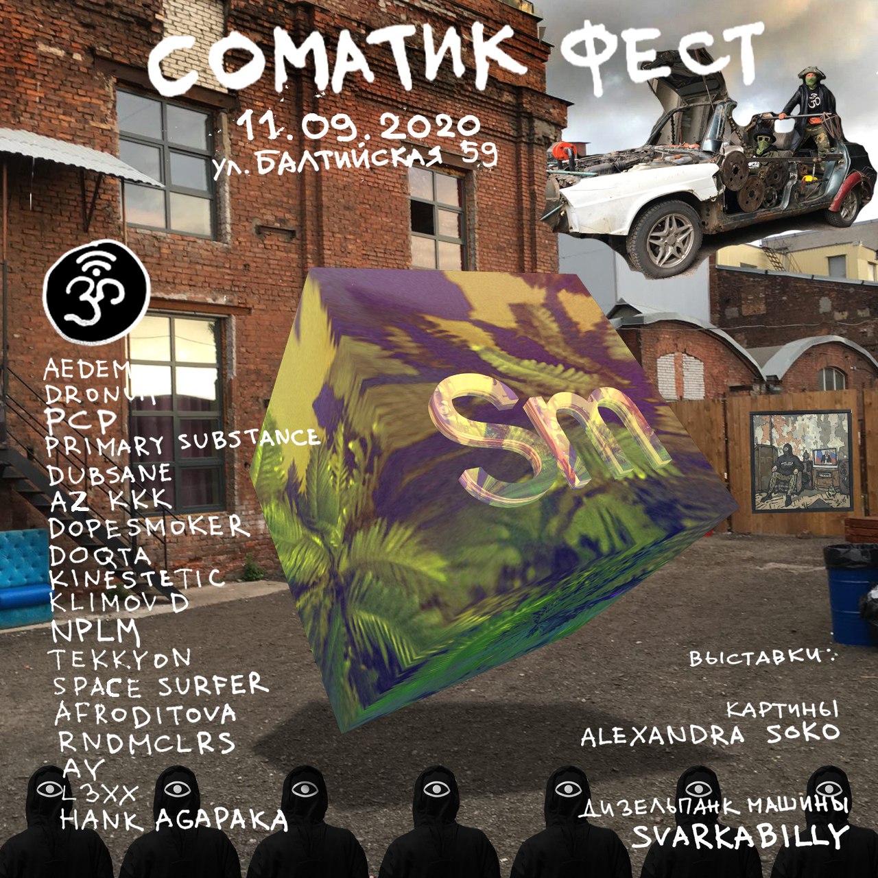 11 сентября начинаем обживать новый локейшн! Новоселье празднуем большим Соматик Фестом. Лайнап огнеметный — 18 артистов. Презентация нового релиза SSS и целых три дебюта. Огонь прям настоящий тоже будет - Сваркабилли пригонят во дворик на своих постапокалиптичных монстр-тачках, а они большие мастера по огню и искрам. На втором этаже особняка будет выставка Александры Soko, которая писала маслом обложку нашего карантинного сборника Scary Spring. Ставшая уже культовой картина, естественно,займет центральное место в экспозиции. Встречу запилили, там подробности. Залетай