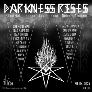В канун весеннего праздника огня Бельтайна пройдет тематический рэйв Darkness Rises, посвященный техно-индустриальным и экспериментальным направлениям электронной музыки, где вас ждет:
