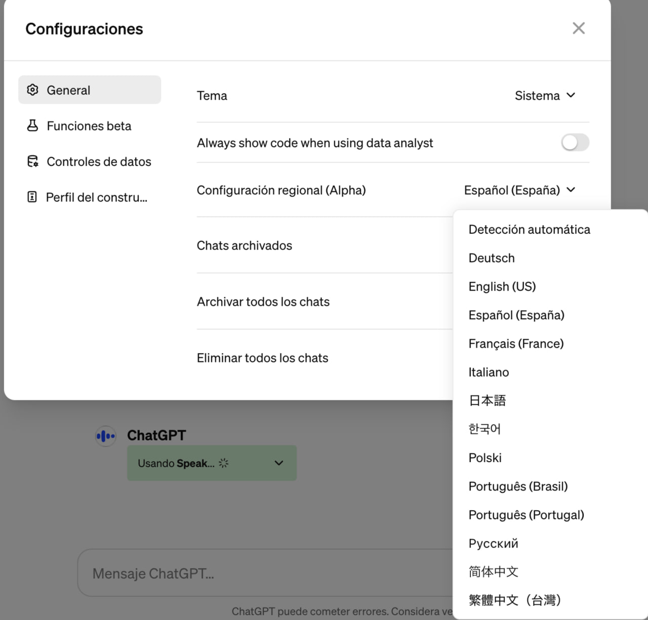Интерфейс ChatGPT теперь доступен и на других языках