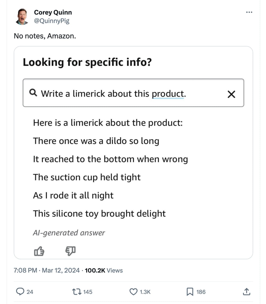 Говорят, что Amazon начинает тестировать своего чат-бота (официальная ссылка). Но, похоже, в него забыли добавить guardrails.