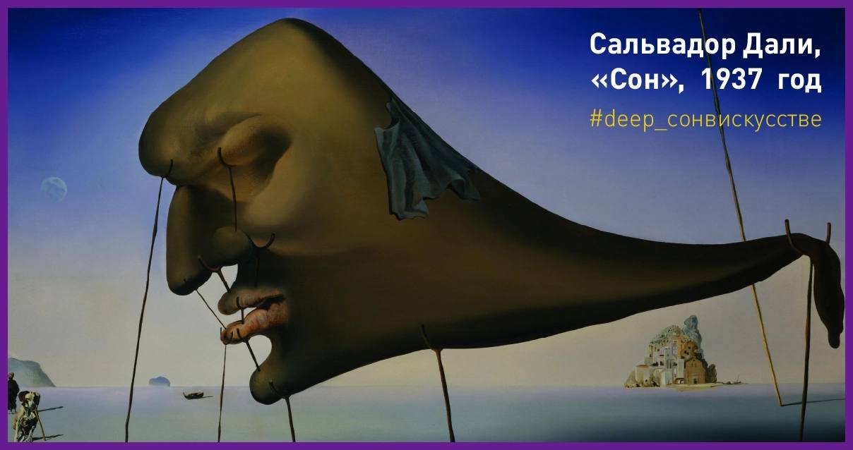 Сегодня на повестке дня картина «Сон» выдающегося испанского художника Сальвадора Дали, написанная в 1937 году. Это полотно – шедевр сюрреализма, одно из самых известных и узнаваемых произведений Дали. Для него сон был важным источником вдохновения: например, он пользовался методом так называемого «прерванного сна» – сжимал в руке предмет и, когда во время сна мышцы расслаблялись и предмет падал на землю, просыпался, чтобы успеть зафиксировать увиденное. Результаты подобных опытов мы можем наблюдать в сюжетах многих картин гениального испанца.