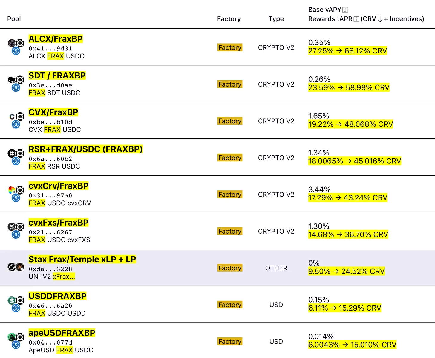В последнем раунде Convex стимулируются 25 пулов Frax и 7 пулов без Frax👀