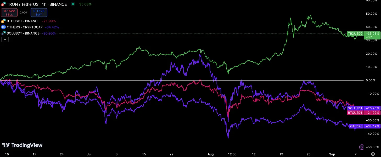 $SOL (+7,7%, 7D) по сути просто отменил просадку прошлой недели. 10 сентября Multicoin Capital опубликовала «Анализ и оценку $DRIFT», оценив токен в $3,58 в базовом сценарии. С момента публикации отчета токен $DRIFT вырос на 46%.