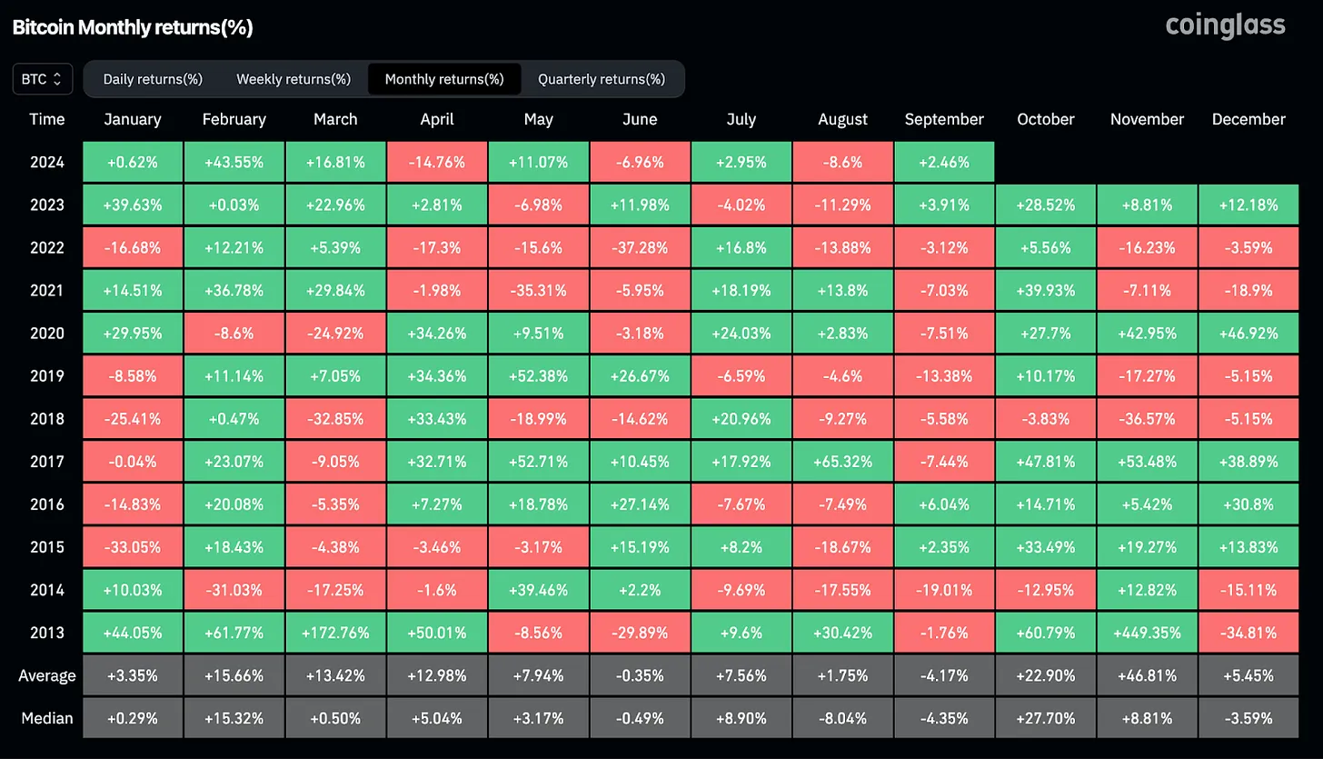 Сентябрь всегда был мрачным месяцем для BTC, с исторически слабыми показателями.
