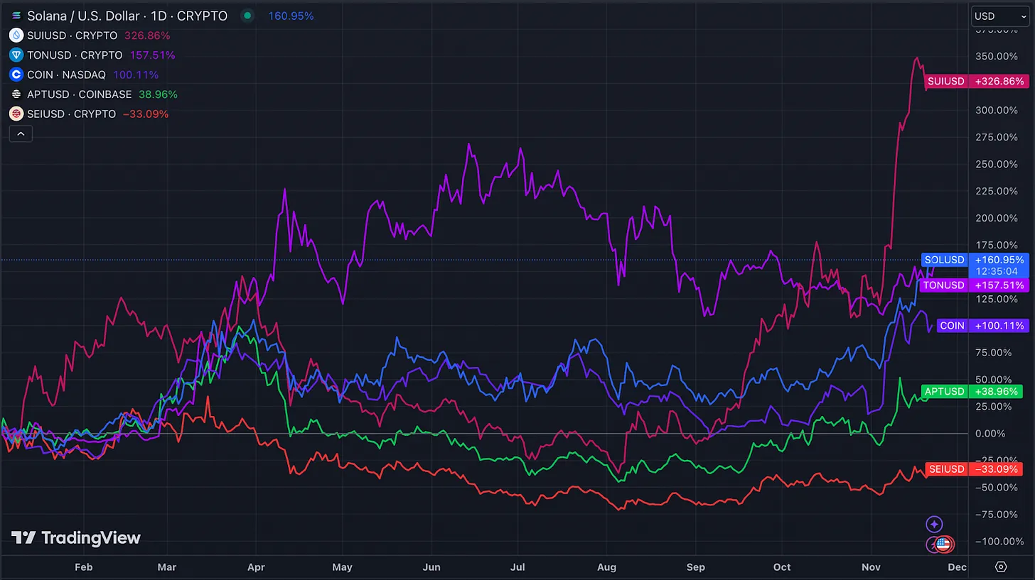 Теперь гонка за звание «‘Solana Killers», похоже, сузилась до трех претендентов: SUI, TON и Base (наше субъективное мнение).
