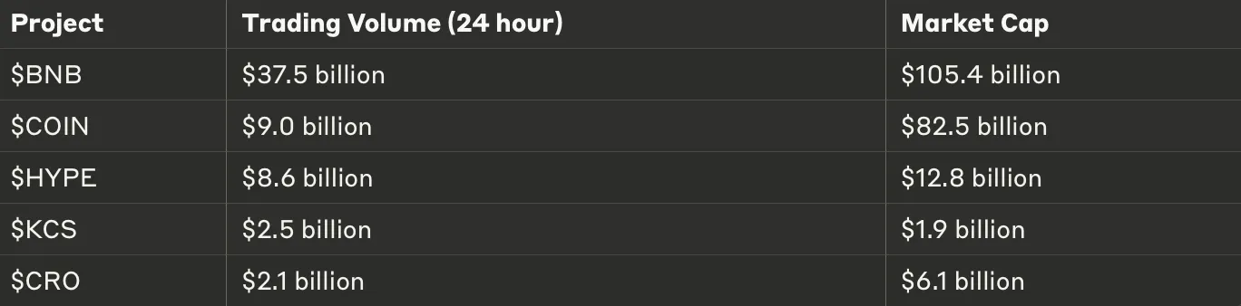 С ежедневным объемом в $5,7B$ HYPE конкурирует с 5 ведущими биржами, несмотря на то, что ей всего год.
