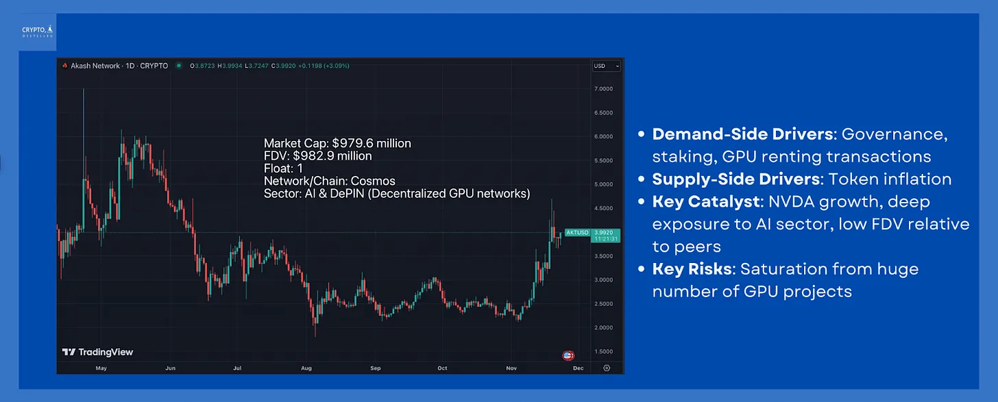AKT, децентрализованный GPU marketplace, наряду с RENDER, является ранним лидером сектора.