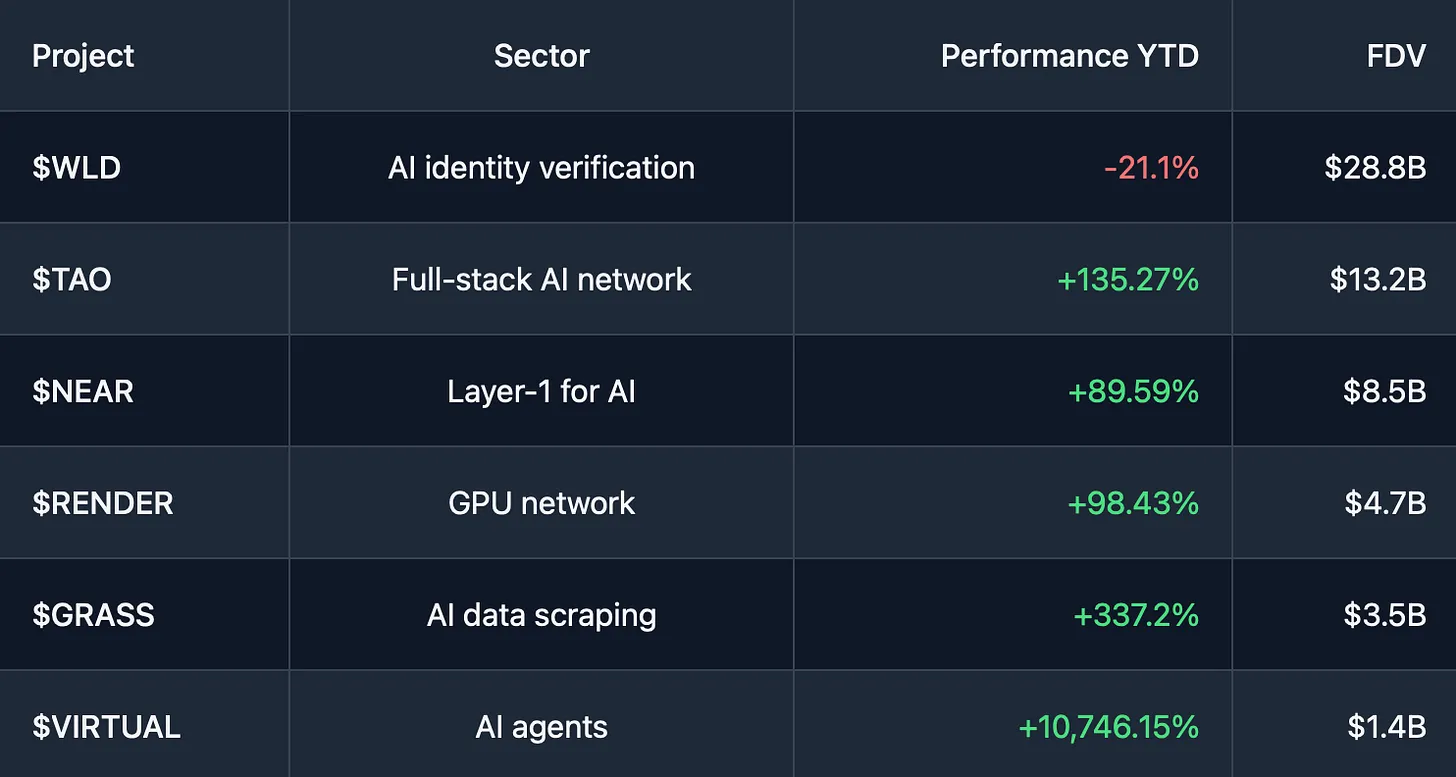 Учитывая огромный импульс, стоящий за ИИ, и динамику цен на эти токены, этот обмен является самым важным изменением в нашем списке. ИИ продолжает набирать обороты, и только на него приходится более 40 % от общего объема криптовалют.