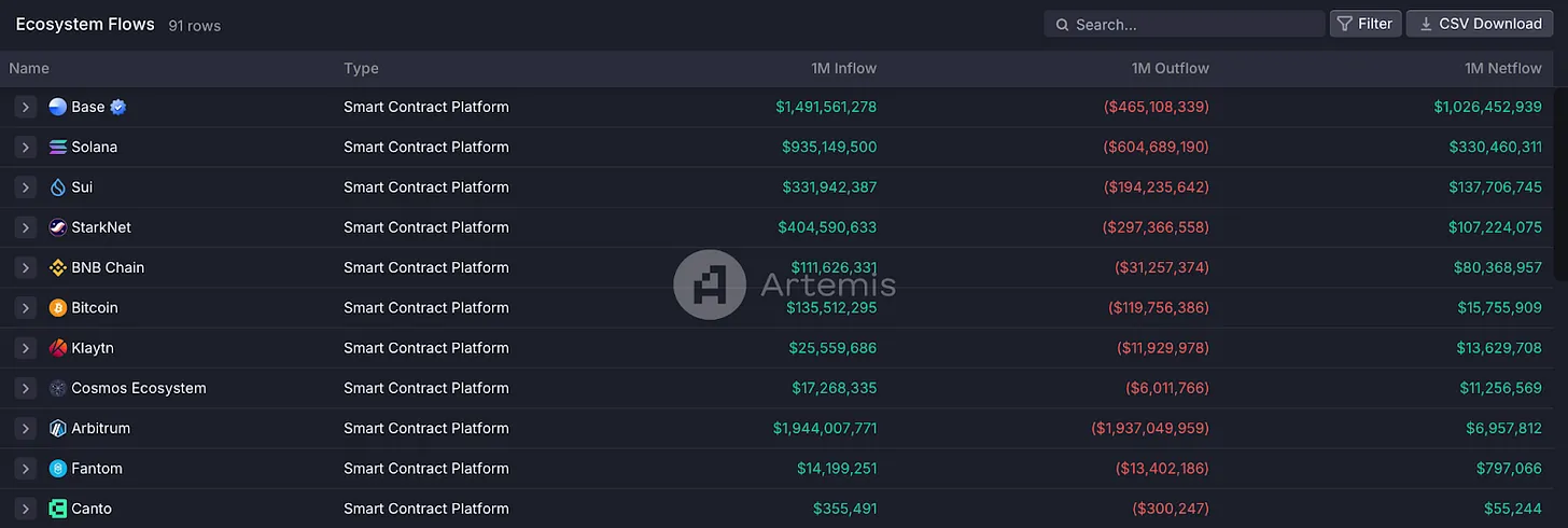 Используя 105M пользователей Coinbase, Base приносит прибыль непосредственно проектам экосистемы, поскольку у нее нет собственного токена.
