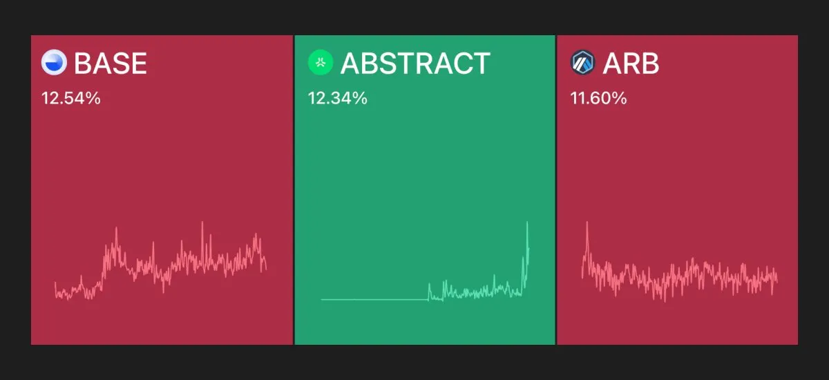 За последнюю неделю Abstract набрал объем внимания, сопоставимый с Base, что свидетельствует о росте интереса к сети.