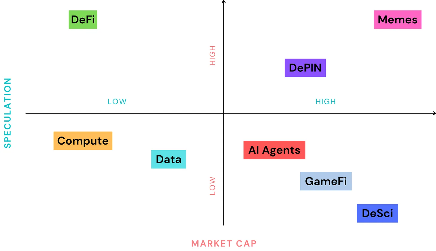 DeSci находится на начальном этапе своего развития, ее MC составляет 860M$. В ней представлены такие смелые игроки, как VITA и TRAC, продвигающие децентрализованные исследования в области долголетия.