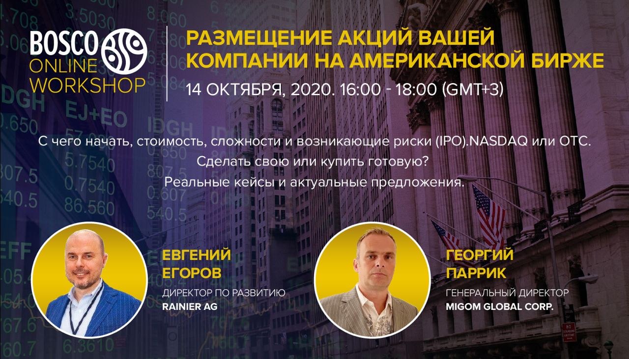 📈14 октября присоединяйтесь к Bosco Online Workshop: «Размещение акций Вашей компании на 🇺🇸Американской бирже», где Вы узнаете: