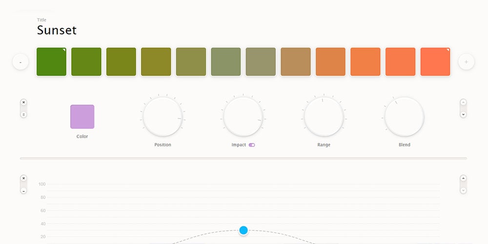 Color Mixer - забавный микшер цветов, в котором можно накрутить себе крутую палитру, регулируя их положение на оси и параметры наложения.