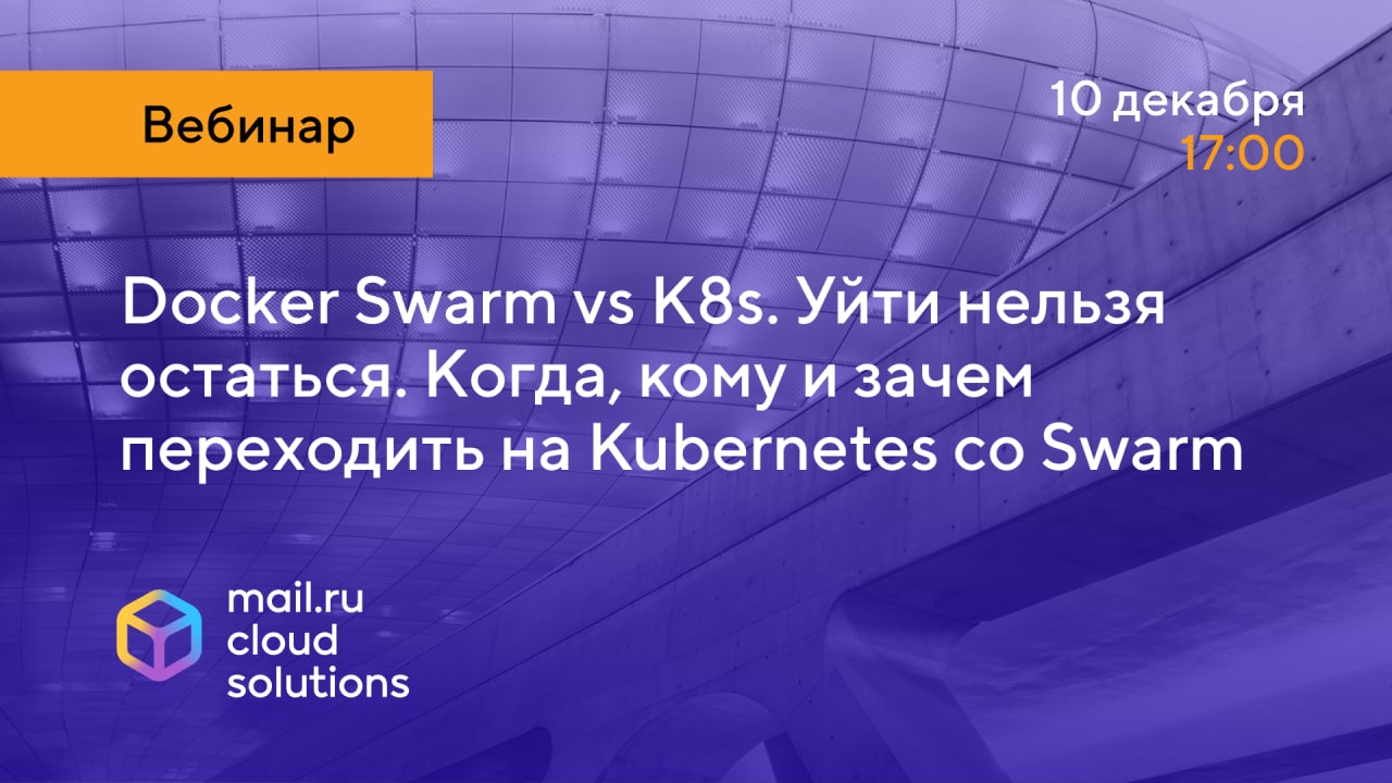 Бесплатный вебинар «Docker Swarm vs K8s. Когда, кому и зачем переходить на Kubernetes со Swarm» от Mail.ru Cloud Solutions