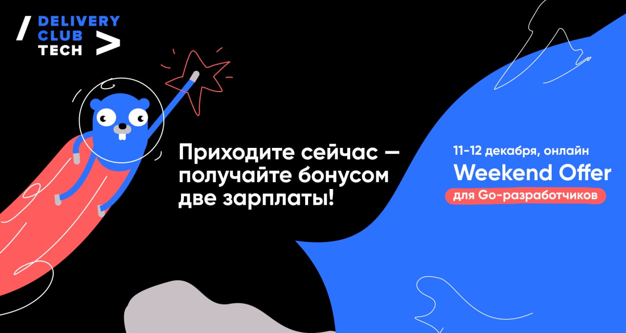 Регистрируйтесь на Weekend Offer Delivery Club для Go-разработчиков уровней middle и senior, проявляйте себя, получайте оффер – и выбирайте команду, в которой хотите работать. Все это – за одни выходные 11-12 декабря.