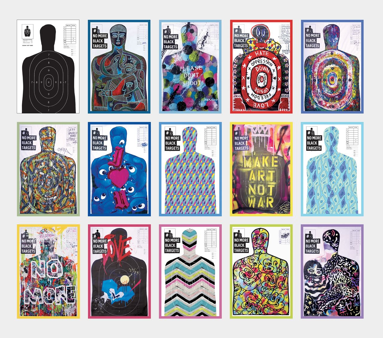 По статистике афроамериканцы в 3 раза чаще оказываются случайно застреленными, чем люди с белым цветом кожи. А все из-за ассоциации с черным силуэтом – самой популярной мишенью для стрелков. Этот арт-проект призван исключить черные мишени на стрельбищах и заменить их на творческие, разнообразные по стилю, как и все люди в этом мире.