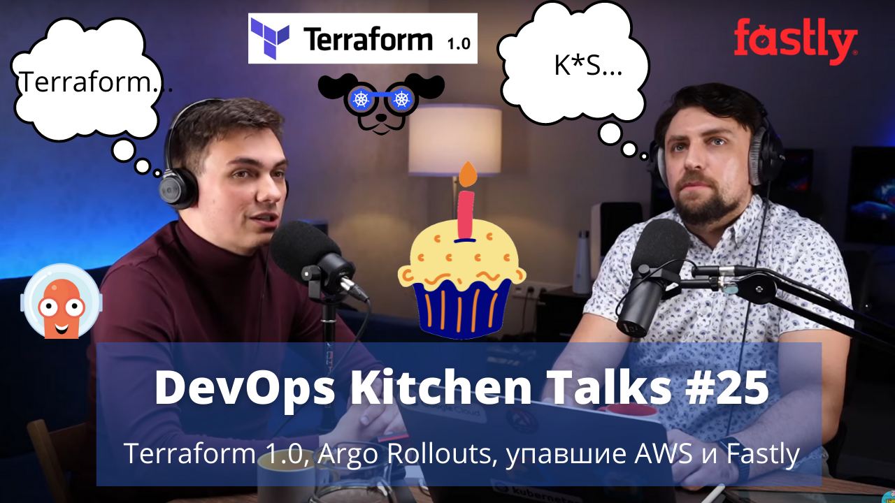 Terraform 1.0, можно сказать, стало главной новостью этого выпуска подкаста! Пока Максим восстанавливался от укусов комариков, мы с Сашей обсудили, как построить CI/CD для IaC, в частности на базе terraform. Какие возможности дает новый Argo Rollouts 1.0 в мире kubernetes. А также байки о трансформации компаний с kubernetes и как построить настоящий DevOps у себя в компании.