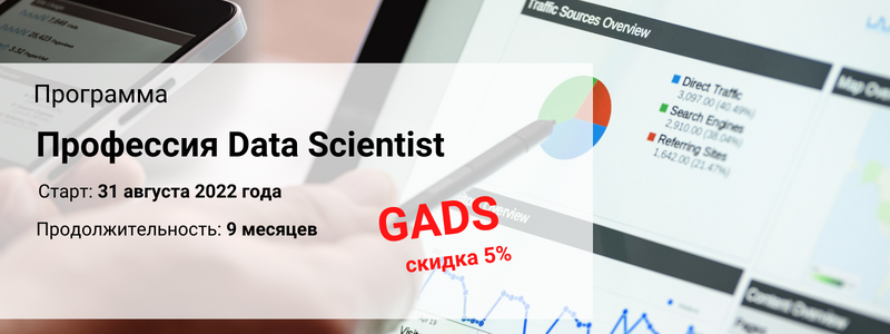По промокоду GADS скидка 5% на программу «Профессия Data Scientist», записывайтесь и начинайте строить карьеру в Big Data! https://fpmi-edu.ru/datascience?utm_source=telegram&utm_medium=partner&utm_campaign=gapartner