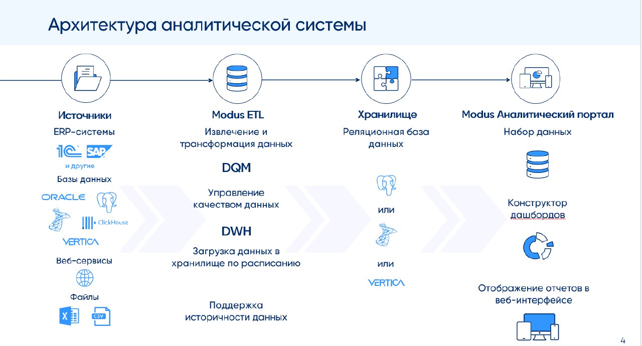 В этой статье поговорим об общем устройстве BI-системы и подробнее остановимся на анатомии Modus BI.