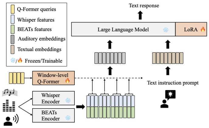 ⏩SALMONN — это большая языковая модель (LLM), позволяющая вводить речь, аудиособытия и музыку.