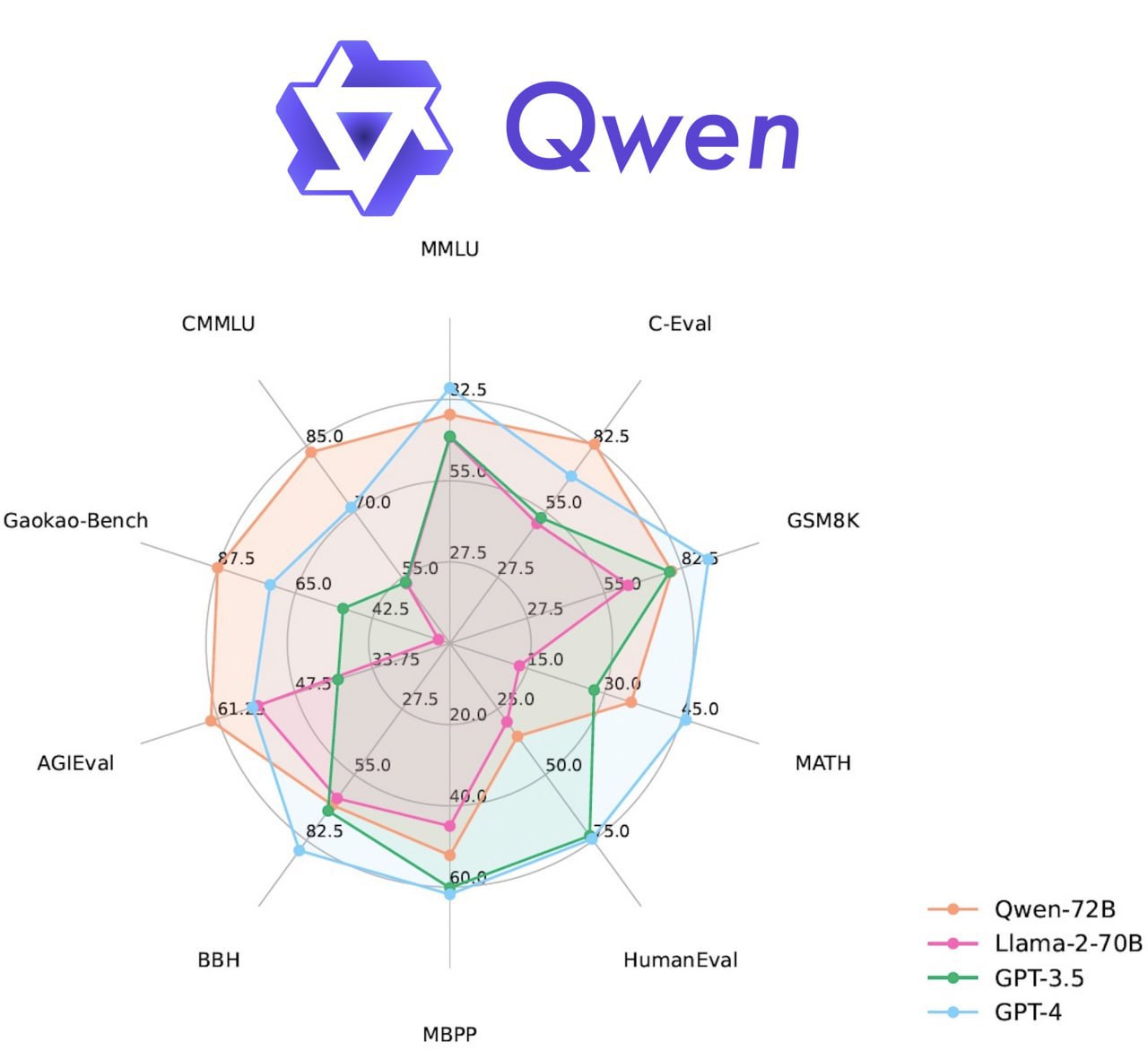 Qwen — создан на массивной языковой модели и был обучен на ошеломляющих 3 триллионах токенов многоязычных данных.