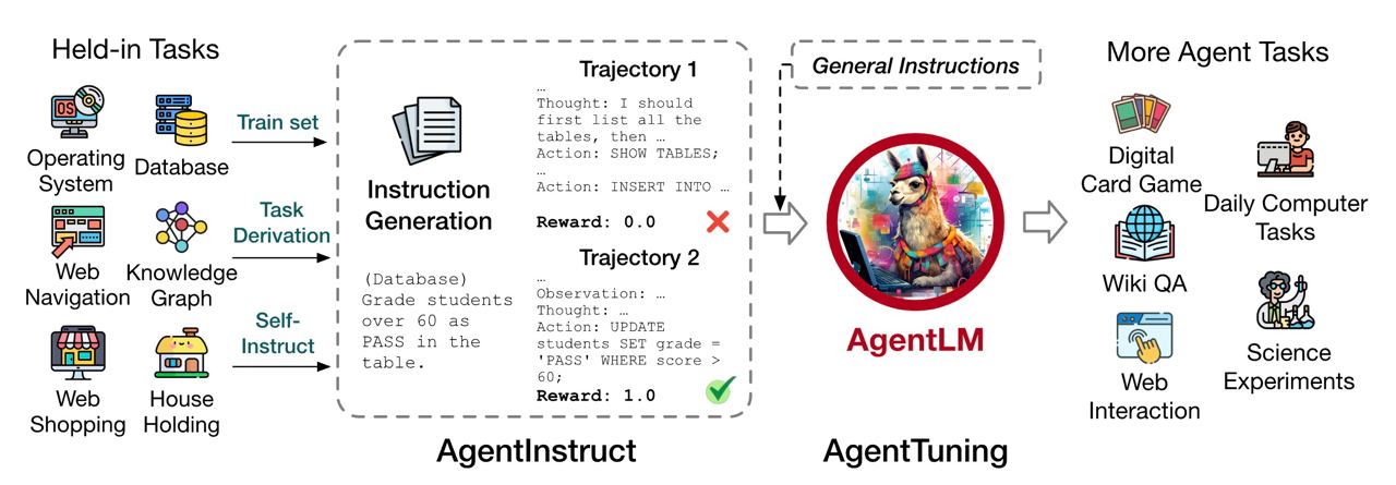 AgentTuning содержит датасет 1866 высококачественных взаимодействий, предназначенных для улучшения работы ИИ-агентов в 6 различных реальных задачах.