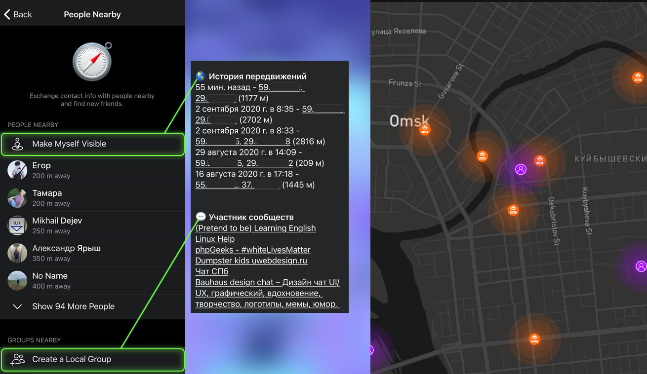 Локальные чаты тоже раскрывают вашу геолокацию, поскольку они привязаны к определенной точке.