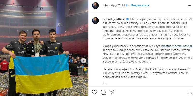 Президент України відмітив, що вперше у історії команда виграли Major-турнір з Counter-Strike: Global Offensive, ставши найкращою командою серед 24 учасників з усього світу.