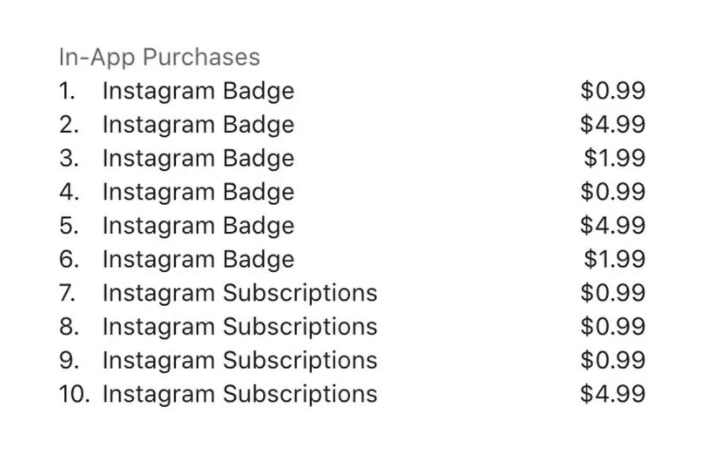 У списку товарів у AppStore від соцмережі з'явилися нові пропозиції. Це «підписки в Instagram», які продаються за $0,99 та $4,99. Підписки дозволять шанувальникам тих чи інших блогерів платити їм за ексклюзивний контент, який не показуватиметься іншим.