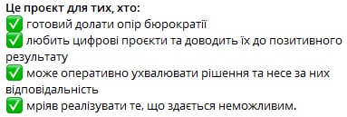Запрацював нацпроєкт для пошуку цифрових лідерів у регіонах, містах і громадах по всій країні. У відомстві зазначили, що долучитися до цифрової трансформації можуть проєктні менеджери, менеджери з комунікацій, менеджери з розвитку, аналітики, графічні дизайнери, мережеві адміністратори та інші фахівці. Щоб потрапити до проєкту потрібно заповнити резюме на сайті http://lift.net.ua